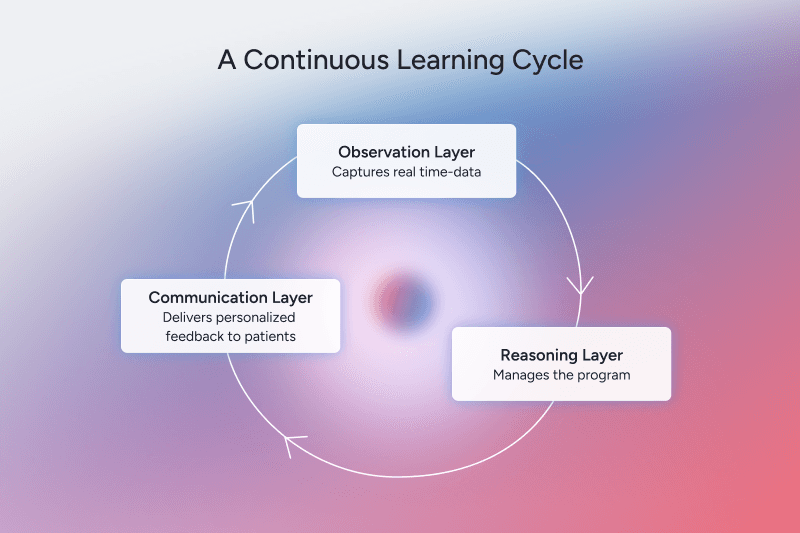 - Care is delivered through one connected system where every interaction builds on the last, so care continues across conditions and programs instead of starting over.
