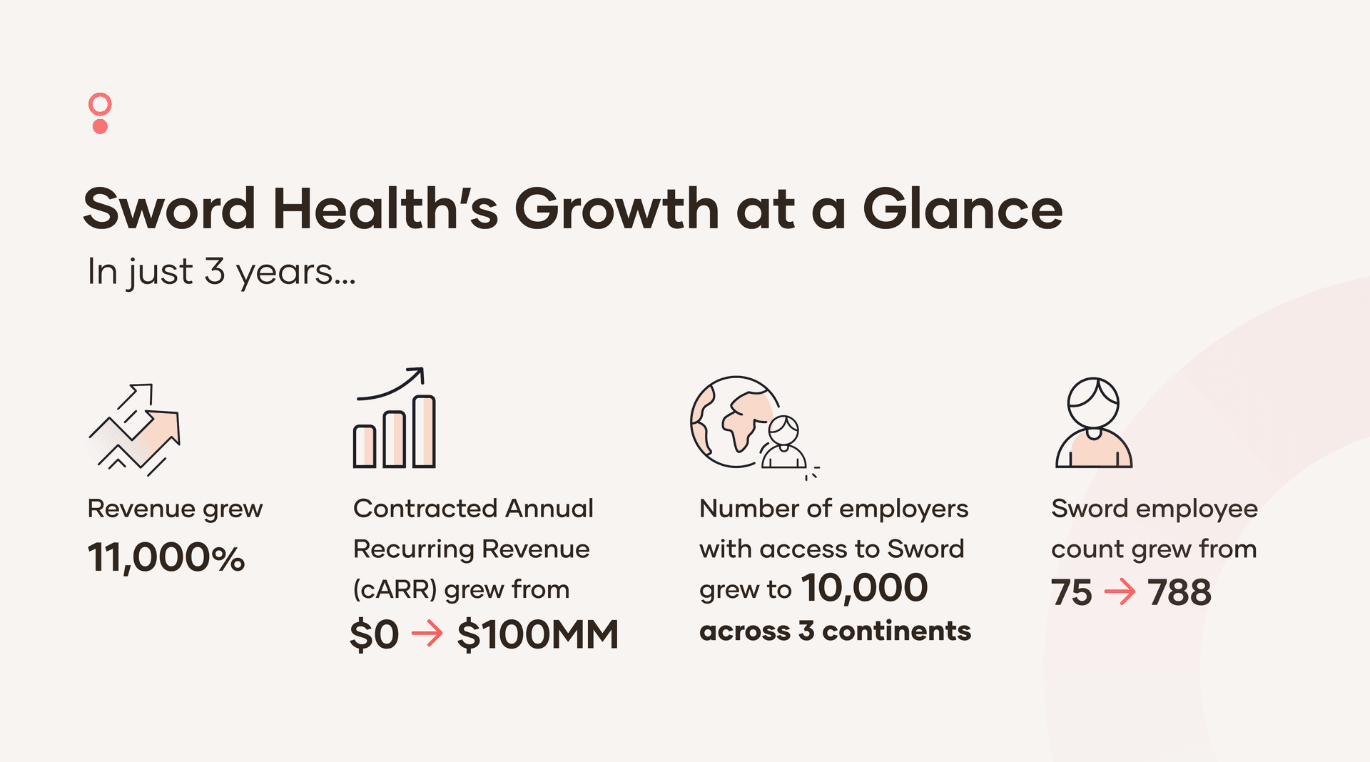 This period of deliberate, exponential growth has paid off: Sword is now available through more than 10,000 employers across 3 continents. Meanwhile, our revenue has grown 11,000% since going to market in 2020, and our internal team has grown 950%.