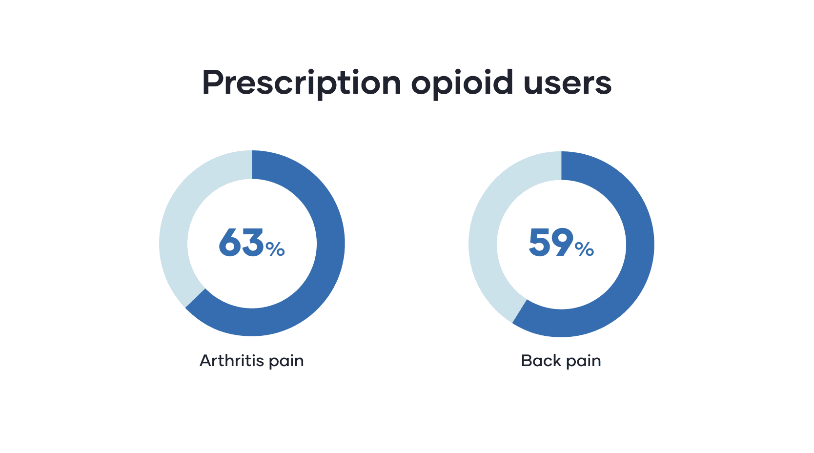 A jarring number of prescription opioid users suffer from musculoskeletal (MSK) conditions, with 63% of regular users reporting arthritis and 59% reporting back pain. Up to 29% of patients prescribed opioids for chronic pain misuse them, and up to 10% of them will develop an opioid use disorder.