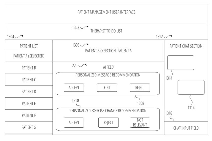 The following user interface diagram illustrates a patient management user interface of a digital therapy platform: