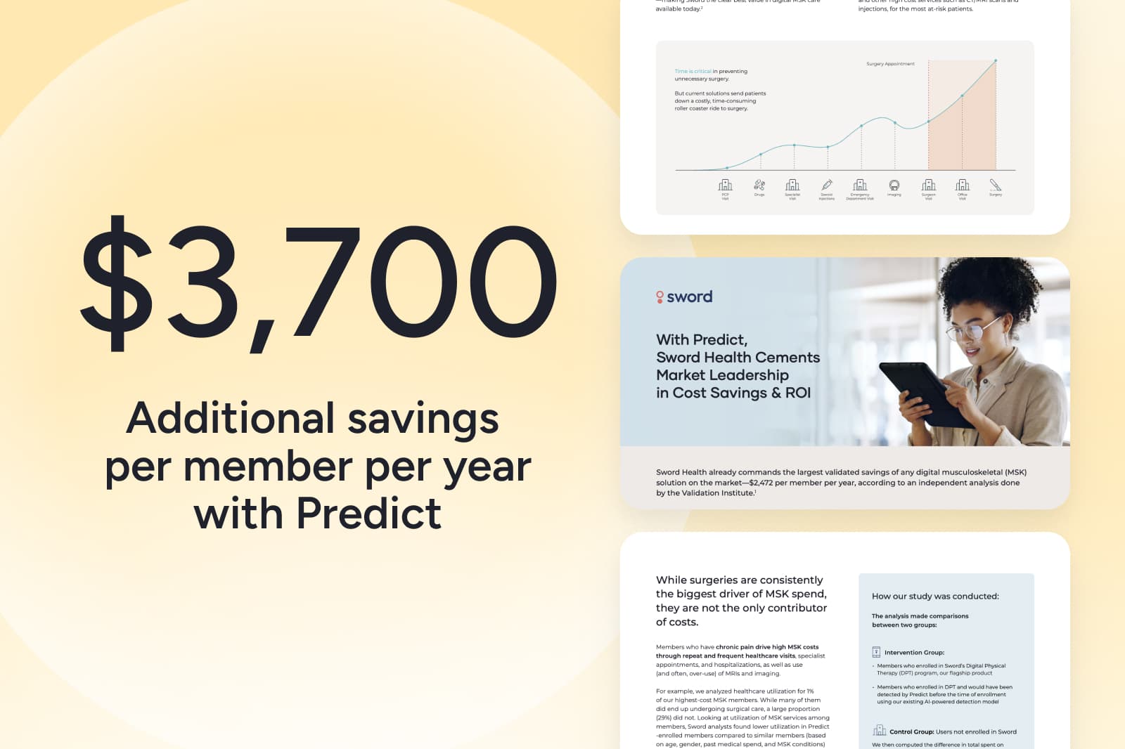 Predict scans your population to identify high risk members trending toward high-cost events across musculoskeletal care and pelvic and women’s health.