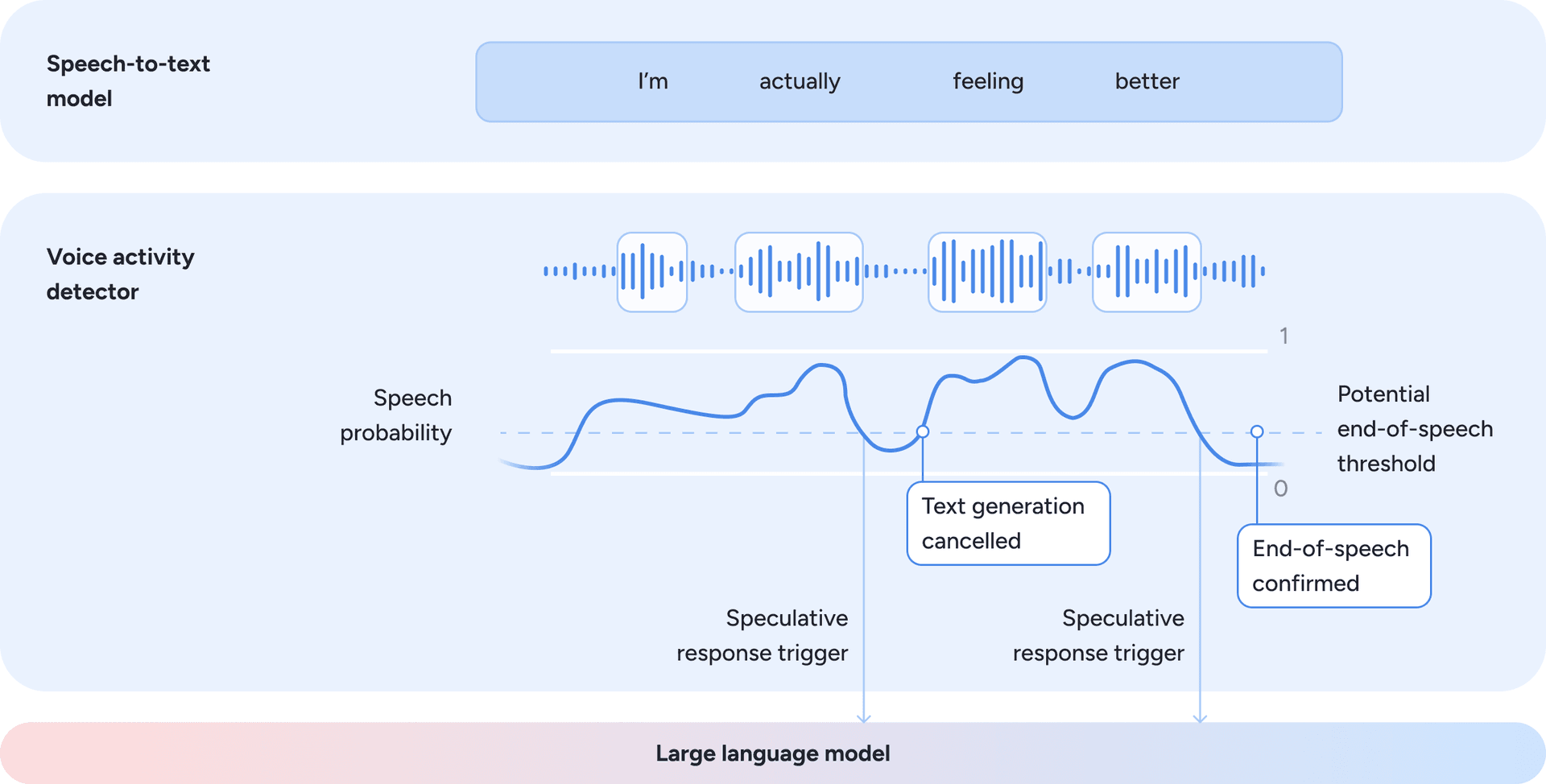 Figure 3: Speculative turn-taking driven by speech probability and potential end-of-speech estimation.