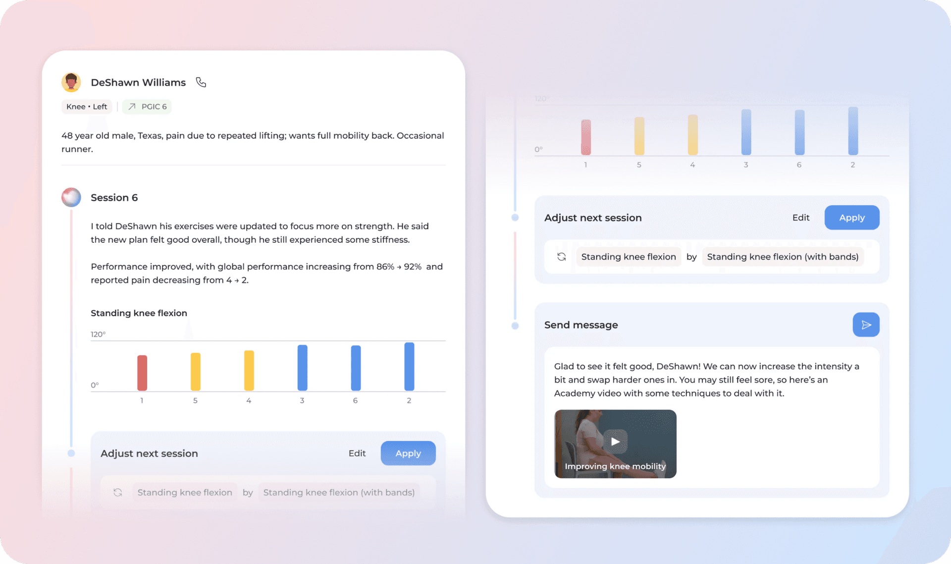 One of the most valuable sources of information is what Phoenix surfaces during real-time sessions. Feedback captured in the moment, from reports of discomfort to signs of low motivation or fatigue, enables Phoenix to recommend actions to the Clinical Specialists, such as adapting treatment plans or guiding how they engage with members between sessions. This point-of-care information collection helps specialists stay fully informed and supports clinical alerts and timely, personalized follow-ups.