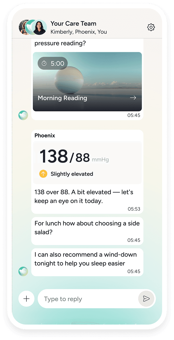 Continuous support for blood pressure, weight, glucose, and cholesterol that helps members build healthier daily habits.